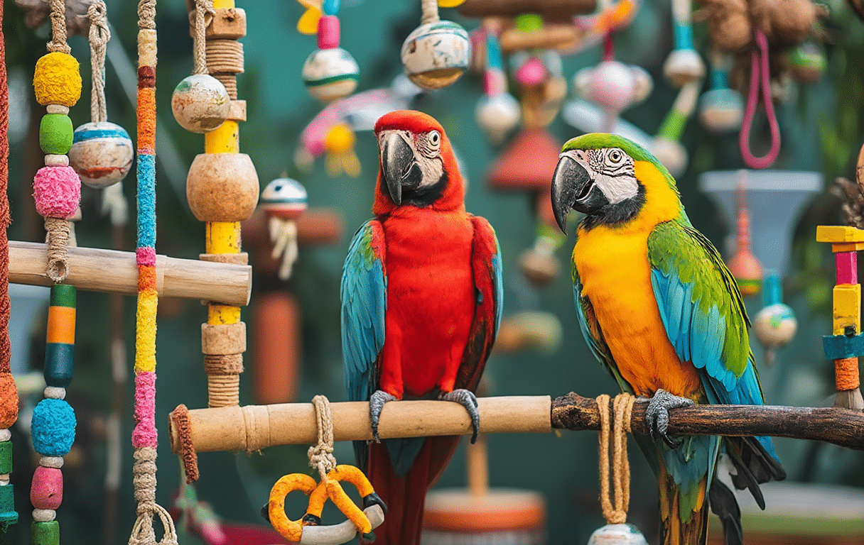 Geeignetes Spielzeug ist essentiell für das Wohlbefinden deines Papageis. Setze auf sichere Materialien, biete verschiedene Spielzeugarten an und rotiere regelmäßig.